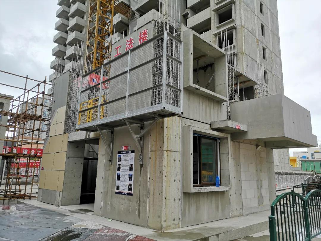 上海浦東的玉蘭公館住宅項(xiàng)目(圖1),外立面構(gòu)件全部是預(yù)制混凝土構(gòu)件(或者是PCF板),沒有外露的、需要支模的后澆混凝土區(qū)域,沒有砌體或其他后施工填充墻區(qū)域;且外架沒有用傳統(tǒng)的外架,而使用了免外架方案(圖2)。以上都必須在設(shè)計(jì)前的策劃階段確定、并在設(shè)計(jì)階段落實(shí)。