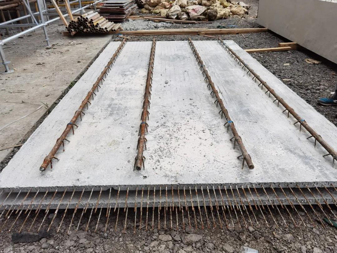PK板最小厚度35mm,疊合后115mm~125mm左右;PK板的鋼管桁架上弦桿采用鋼管灌注微膨脹高強(qiáng)砂漿,腹桿采用HPB300級(jí)直徑6mm鋼筋。