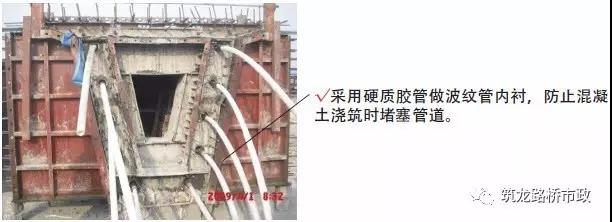1) 在鋼筋綁扎過程中,應(yīng)根據(jù)設(shè)計精確固定波紋管和錨墊板位置。