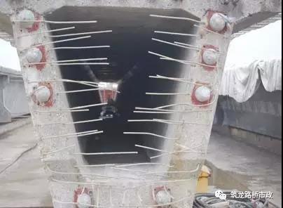 1) 箱梁預(yù)制時應(yīng)將伸縮縫預(yù)埋筋、泄水孔、防撞護欄預(yù)埋筋、吊梁孔(環(huán))、鋼束孔道等設(shè)計要求的預(yù)埋件全部按位置準確裝好。