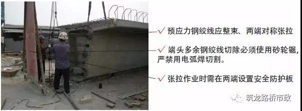 3) 預(yù)應(yīng)力筋張拉時,正面不能站人,并設(shè)置擋板和警示標(biāo)牌。